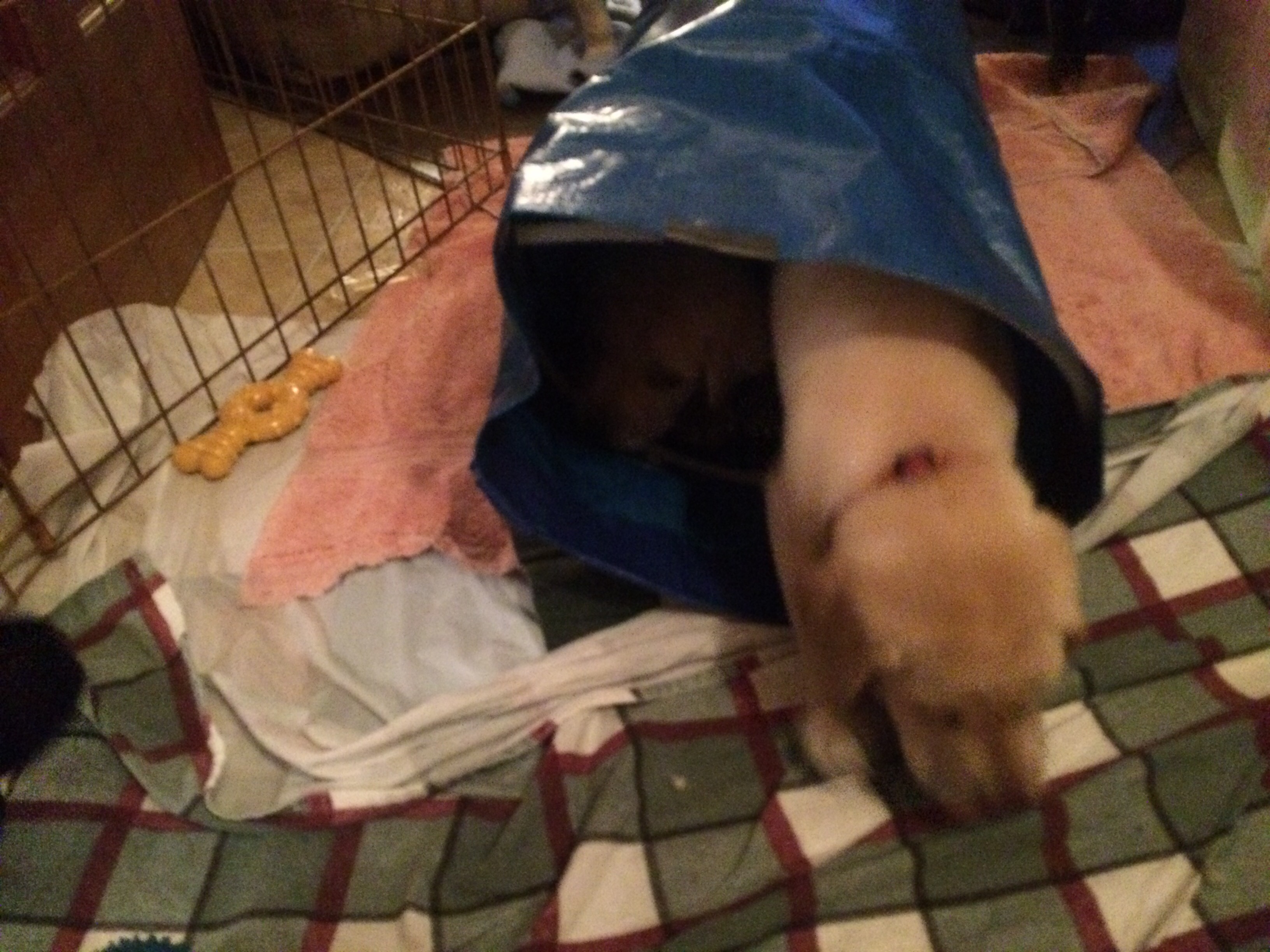 Sometimes I have to stop and laugh because I have this huge area for the puppies and I think it’s hilarious that they all gather in one TINY spot! In the pics below you see 6 of the pups squished into one area, and then you see Mr. Orange who figured out the REAL way to get a good nap…….Smart Boy Mr. Orange!