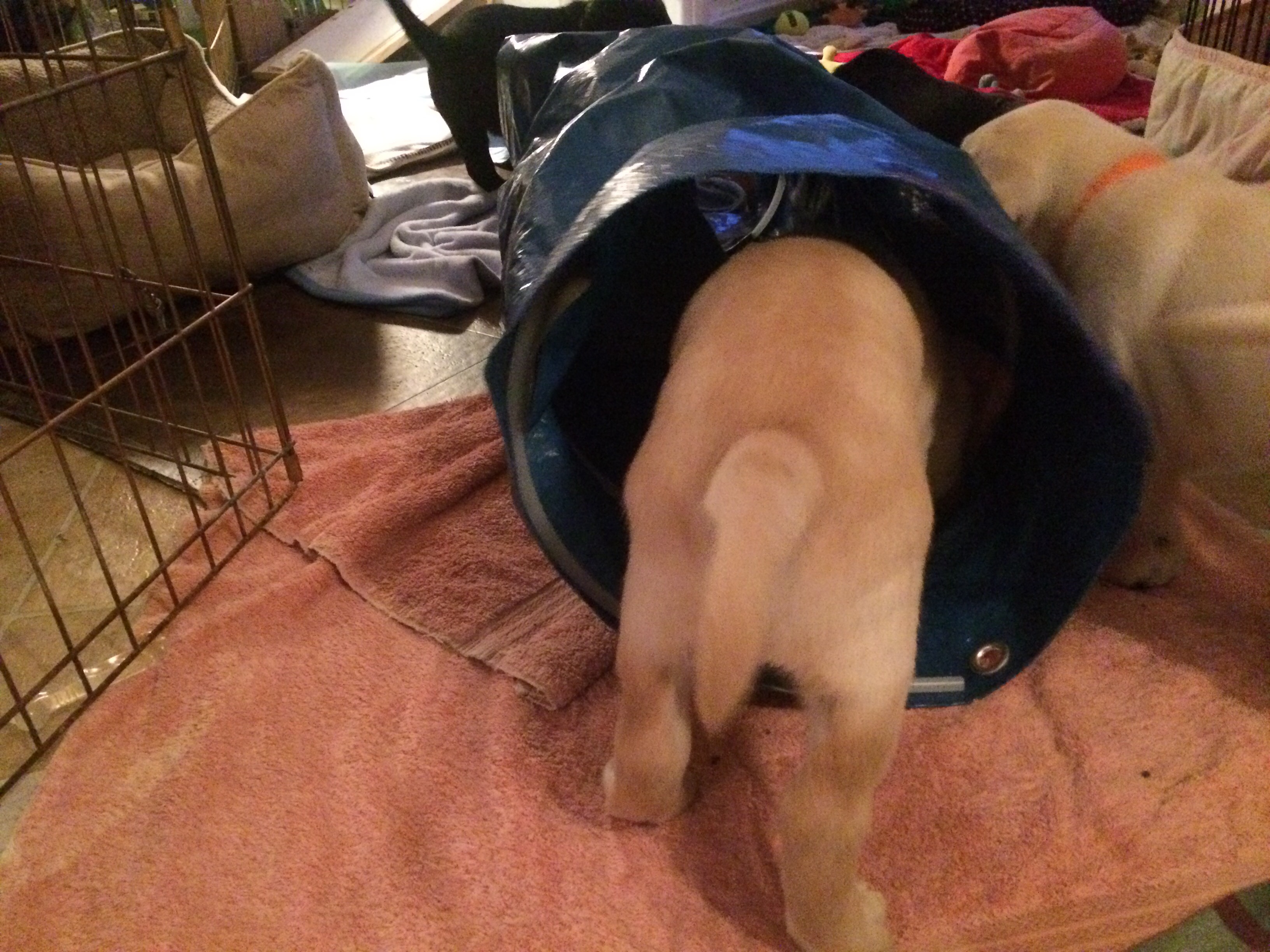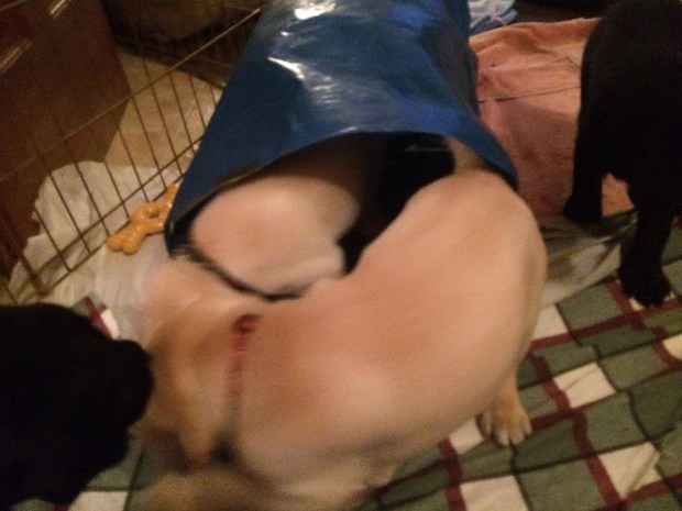 Sugar ran into the play area, stole one of their toys and came back out to taunt them from the outside……